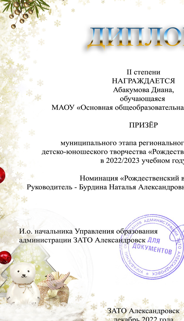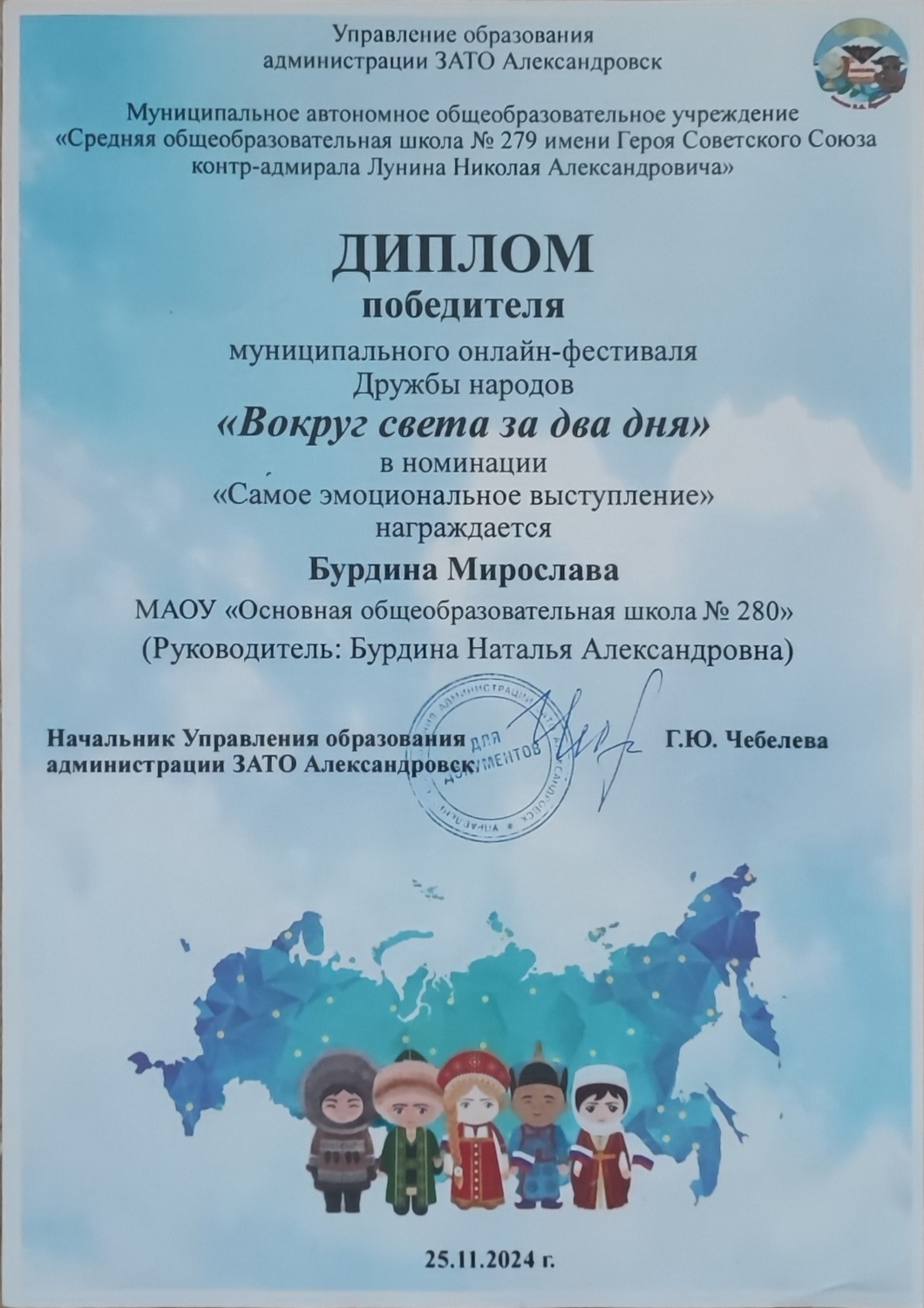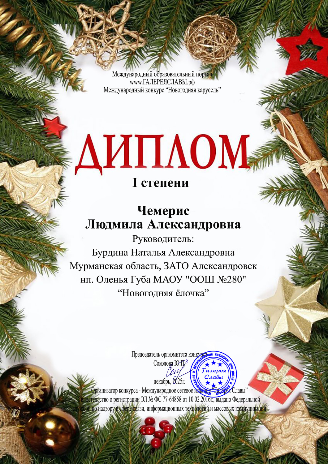 За пределами школы моя жизнь тоже насыщена и интересна. Регулярно занимаюсь стретчингом и силовыми тренировками, поддерживая хорошую физическую форму и энергию. Моё увлечение интеллектуальными и настольными играми реализуется в роли капитана команды «Настойка разума» в «Чайка квиз» города Полярного — это отличный способ развивать логическое мышление и навыки командной работы. А для души я люблю печь вкусные торты и пирожные, радуя близких и друзей своими кулинарными творениями.