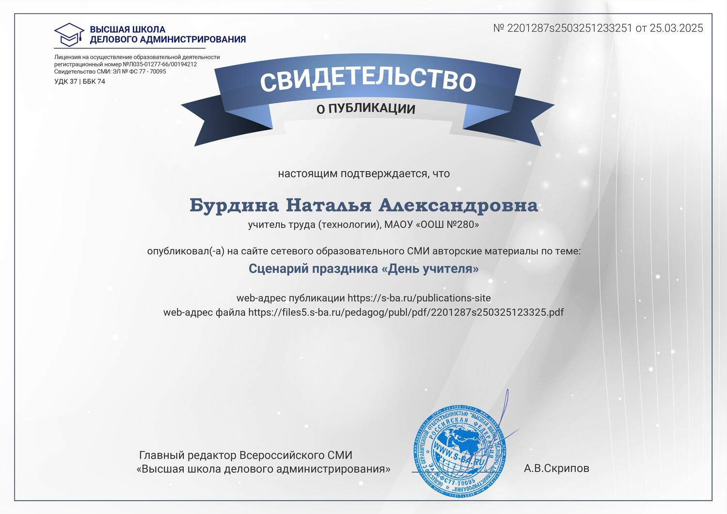 Активное участие в жизни школы для меня — важная часть работы. Я с удовольствием организую и провожу школьные концерты, мастер-классы и другие мероприятия, стараясь сделать школьную жизнь яркой и запоминающейся для ребят.